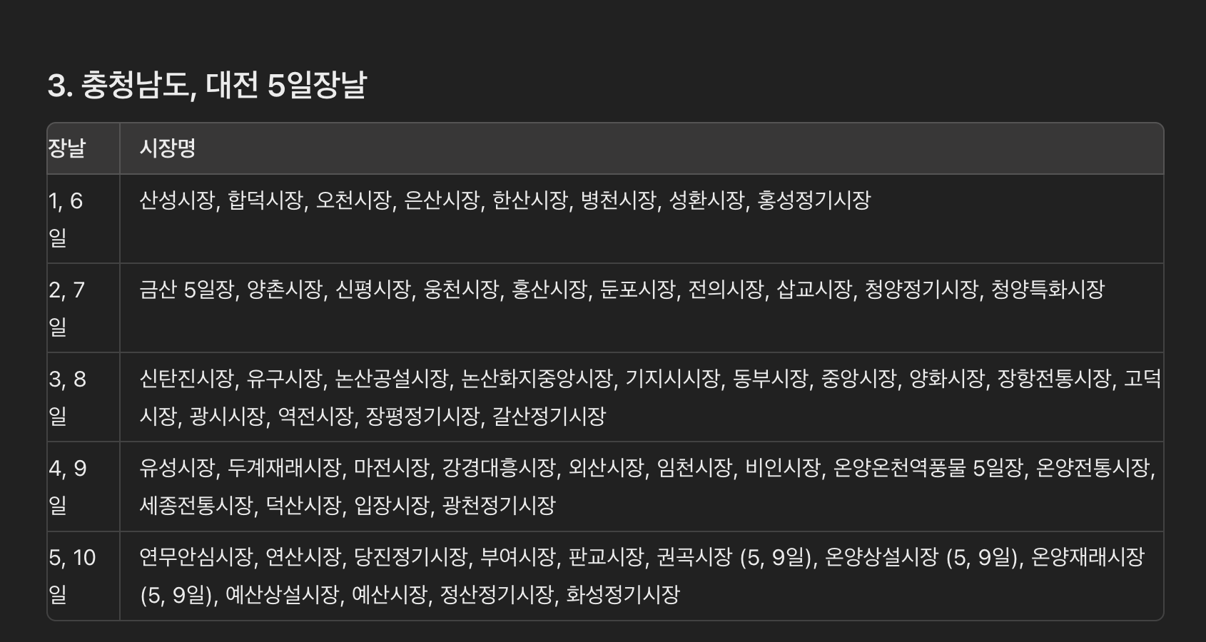 3. 충청남도, 대전 5일장날