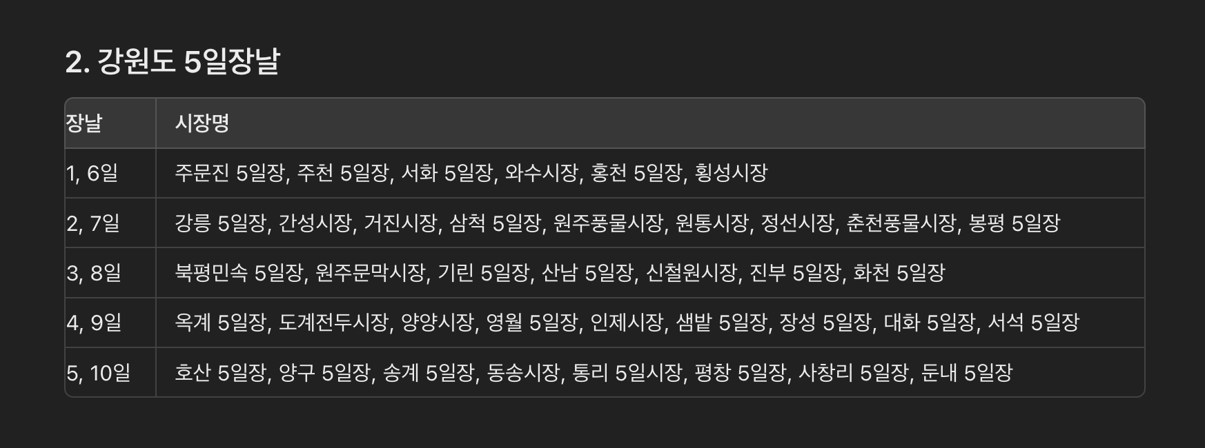 2. 강원도 5일장날