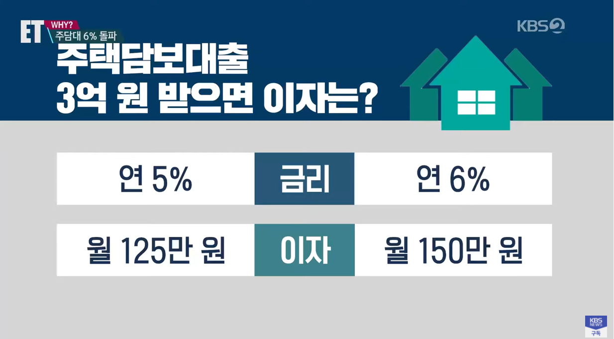 오늘은 뉴스에서 방송된 대출이자 6%에 대한 정보를 가져왔습니다.