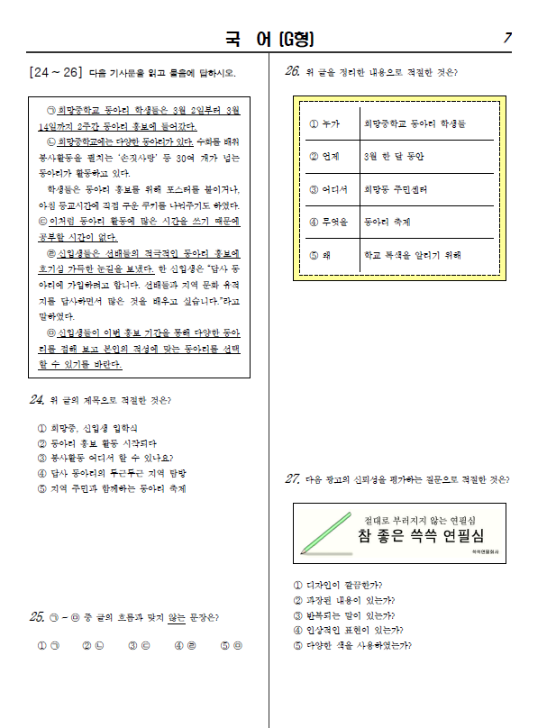 *영어 듣기 파일은 별도로 없으니 대본을 참고하시거나 문제 유형만