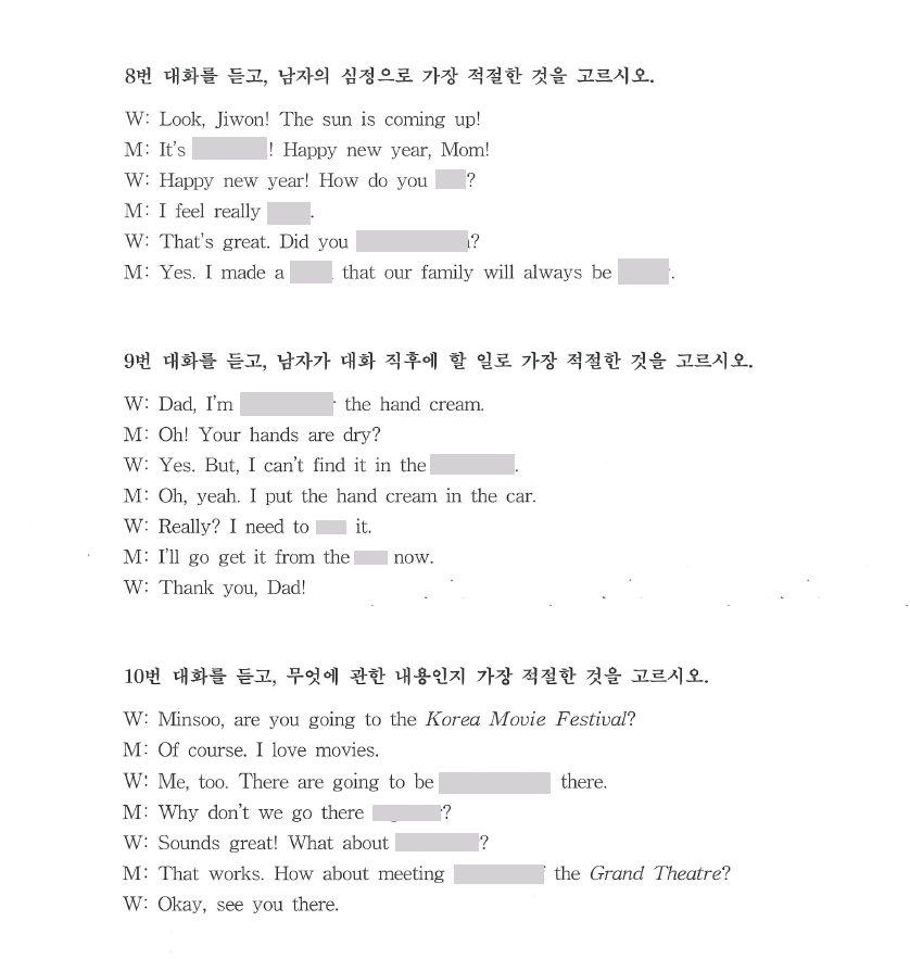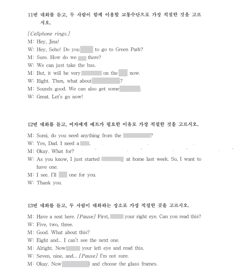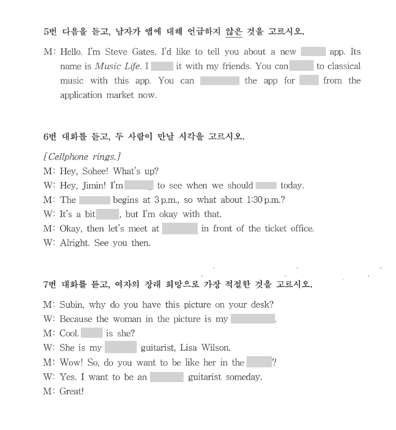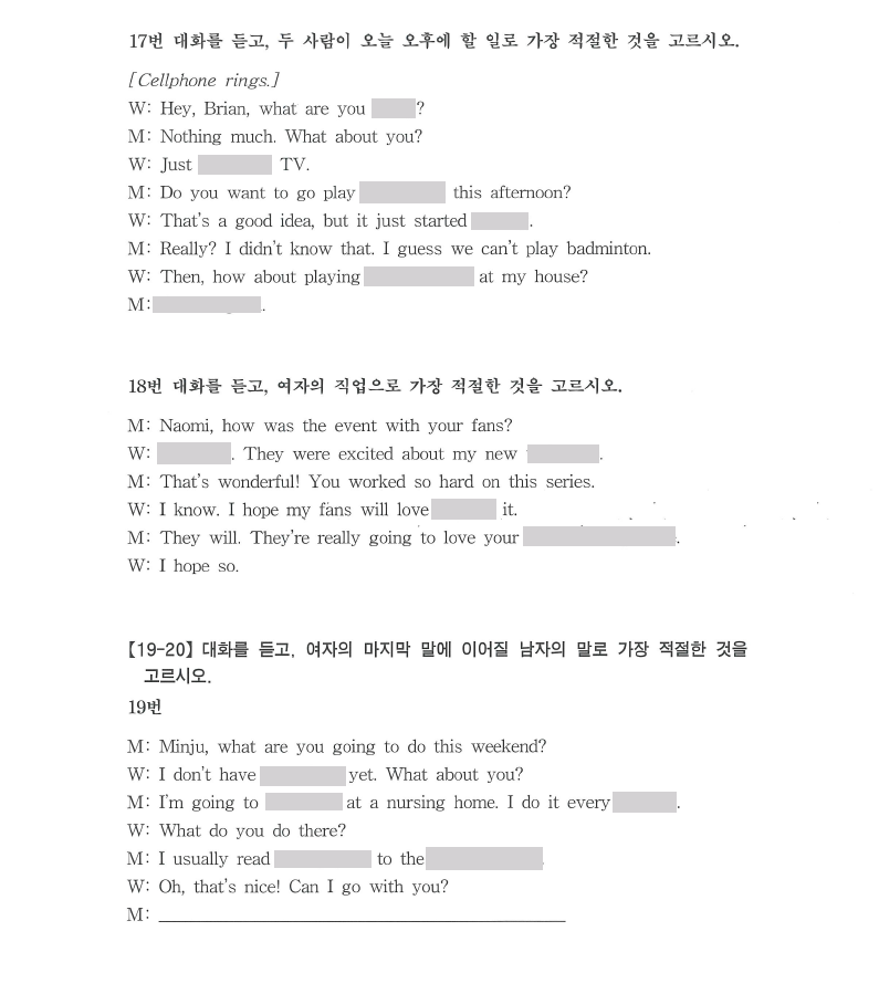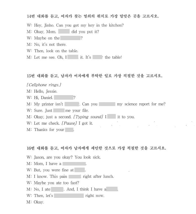 문제/정답/듣기파일과 dictation을 해 볼수 있는 받아쓰기 자료입니다.