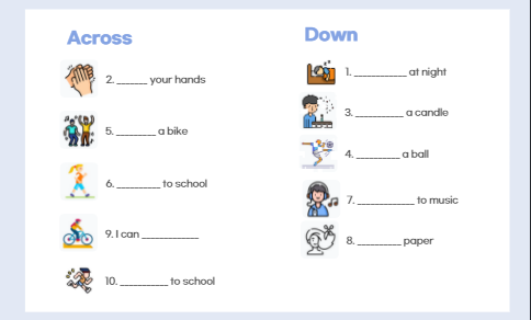 안녕하세요 :) 하고재비 입니다. 오늘은 학생들과 재밌게 할수 있는 크로스워드 퍼즐 워크시트를 공유합니다. 간단한 영어 동사를 그림을 보고 생각해서 넣는 단어 게임입니다. 기초 단계 영어