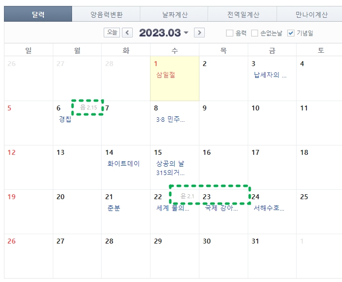 음력이 2월 29일까지 있지요 ! 주기적으로 오는 음력날짜는 매번 3월에 돌아오는 것이 아니라