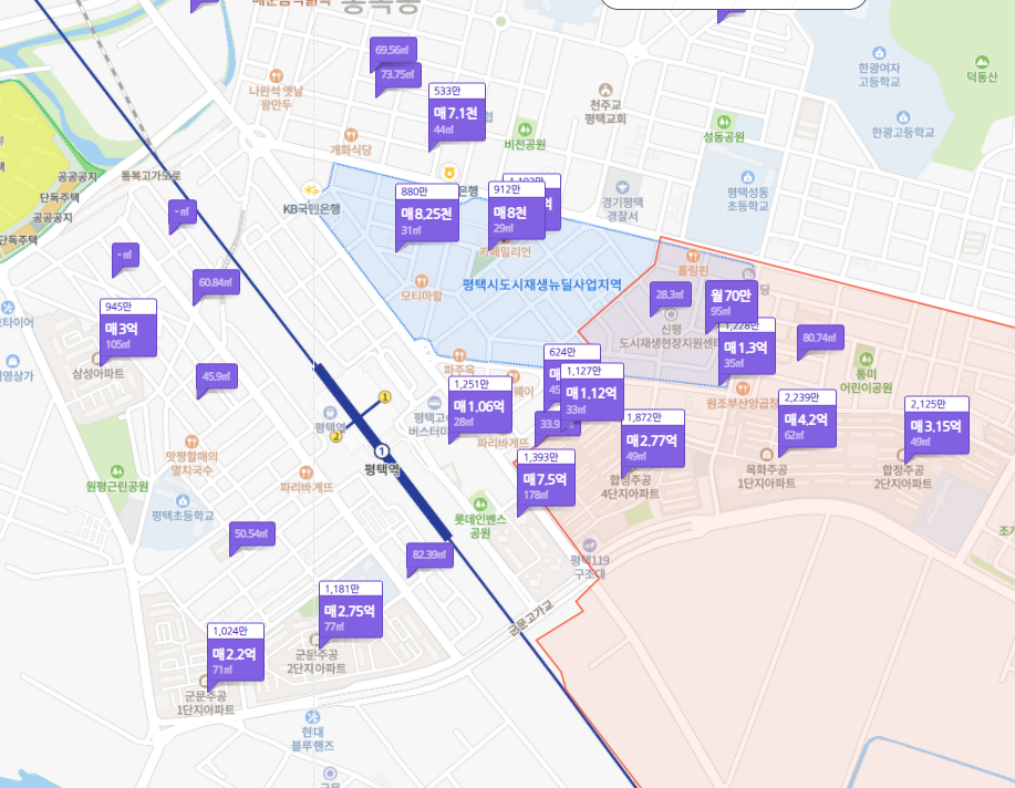 아무래도 평택역을 기준으로 서쪽으로 훨씬 발달이 많이 되다보니 동쪽은 많이 부족해 보여서 그런것 같습니다.