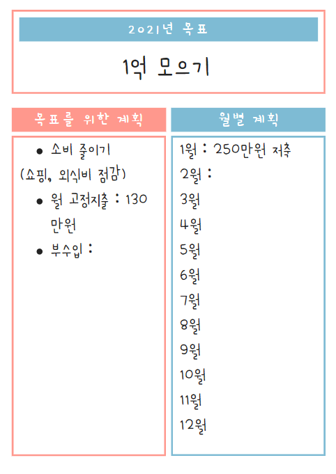 예를들어 - 2021년의 목표는 1억 모으기라면