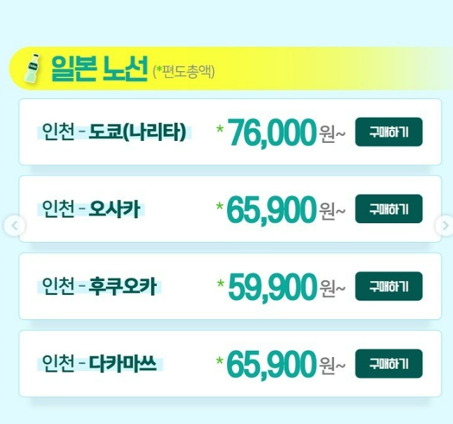 일본노선 할인가격은 서울/부산 항공권 가격보다 더 저렴하네요.